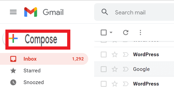 लॉग इन करने के बाद आपके सामने नीचे दिए गए फोटो की तरह window खुलेगी. अब नया gmail मेसेज लिखने के लिए left side compose पर क्लिक करे इससे एक नया window खुलेगा.