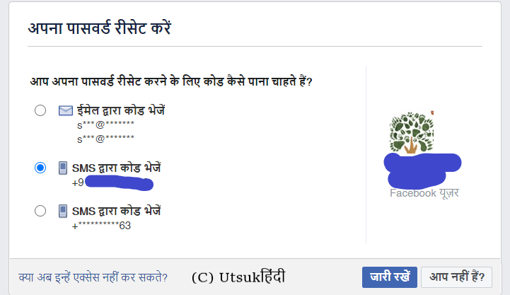 इस पेज में आपकी रजिस्टर्ड मोबाइल नंबर या email id दिखाई देगी. किसी एक को चुनकर जारी रखे पर क्लिक करे.